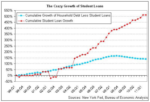 Student Debt from 1999 to 2011,  from The Atlantic, August 2011