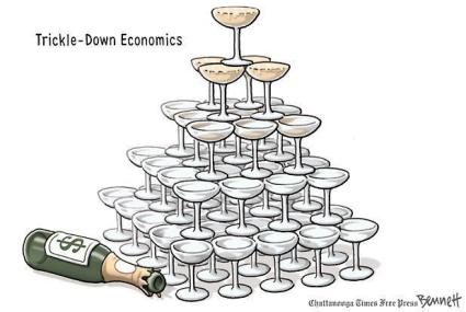 The last sentence is worthy of emphasis because of how early Ryan’s views were formed and how little they seem to have changed. Whether he actually used the phrase “trickle-down economics” in discussing his views is really besides the point. His friend got it right. This is what Ryan believed and does believe. Just read his words. And unlike Obama he hasn’t become more moderate or more pragmatic with age. With regard to the economy he just digs his heals in deeper in the sterile soil of Ayn Rand and her fellow radical rightists. (Although his views on many social issues, e.g., birth control, are decidedly non-libertarian.)