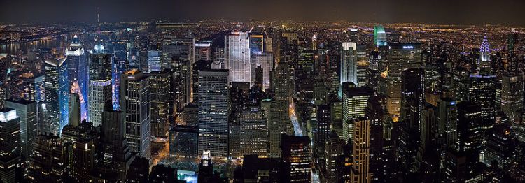 NYC looking North from the EMPIRE STATE BUILDING. Photo (proportions altered) by DAVID ILIFF, license HERE.